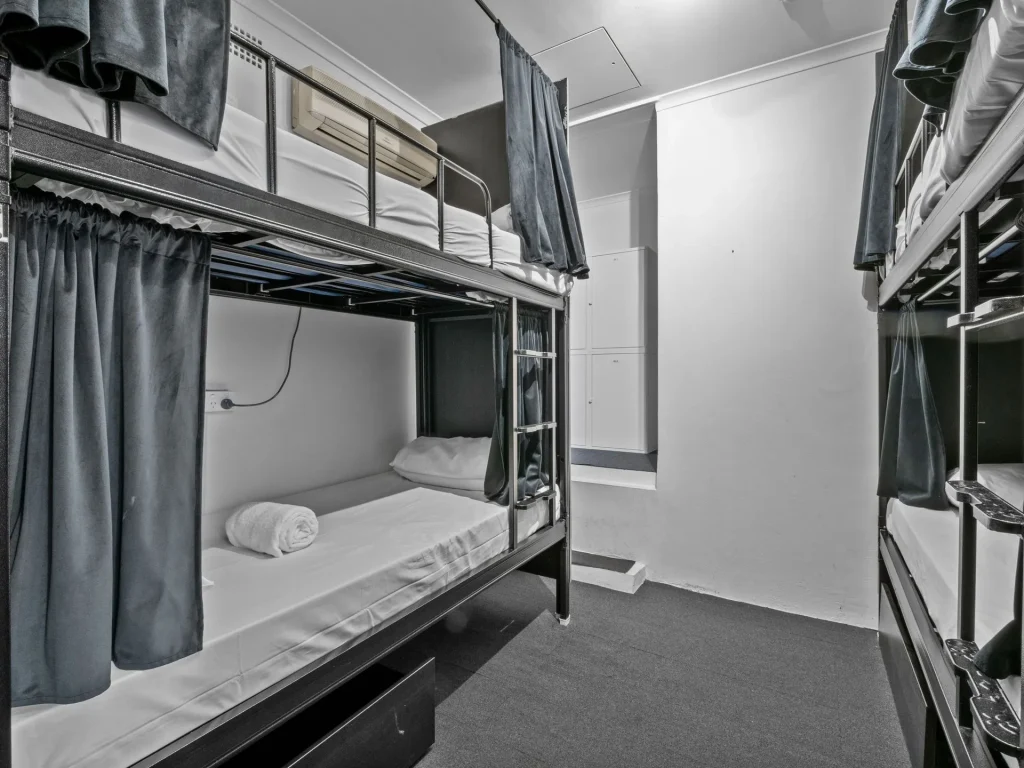 A Mixed POD Bedroom shared by 6 people with a shared bathroom